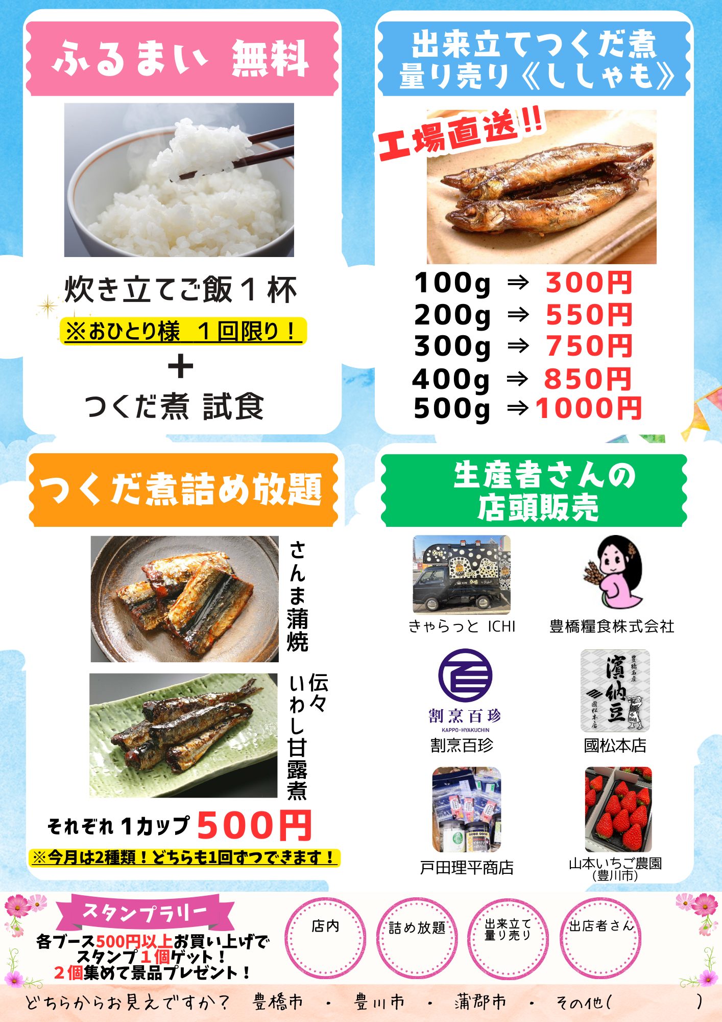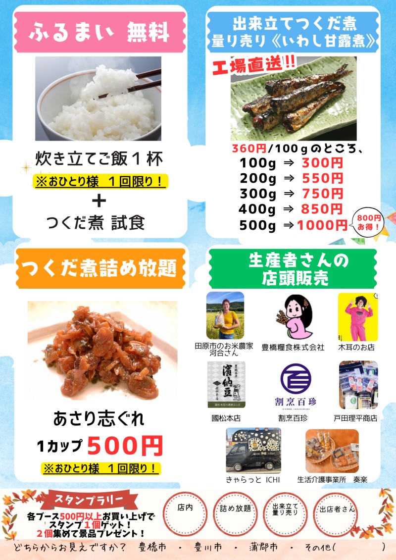 今月もしんしろ軽トラ市に出店します!恒例のよりどりセット販売やおにぎり等を販売予定ですのでお楽しみにっ!